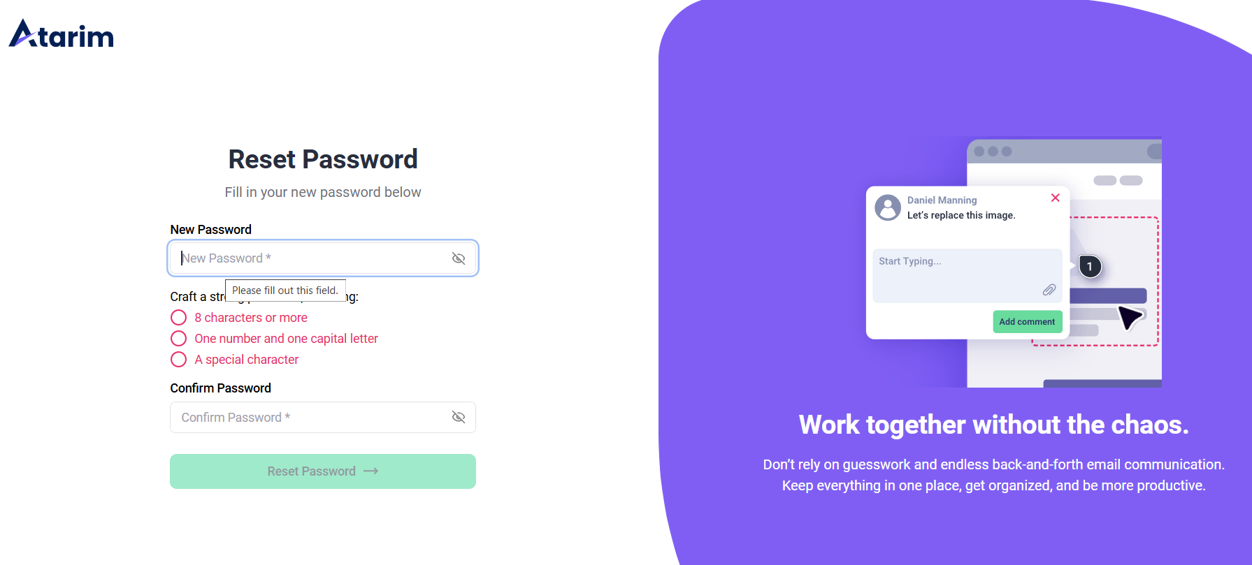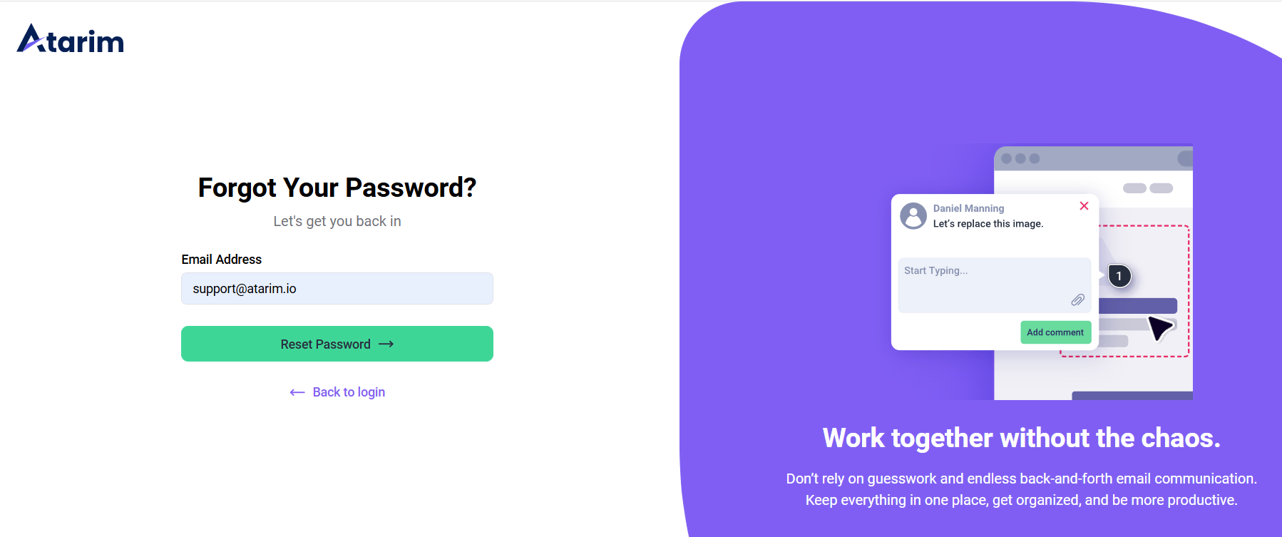 Locked out? Here’s how to securely reset your password and get back into Atarim.