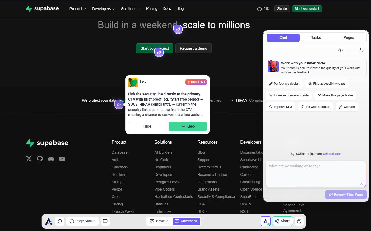 Lexi reviews every piece of visible text on the page — from buttons and labels to headlines and onboarding flows — with a focus on clarity, persuasiveness, and tone consistency. She checks whether copy communicates the message clearly, aligns with your brand’s voice, and guides users toward the intended action without confusion or friction.