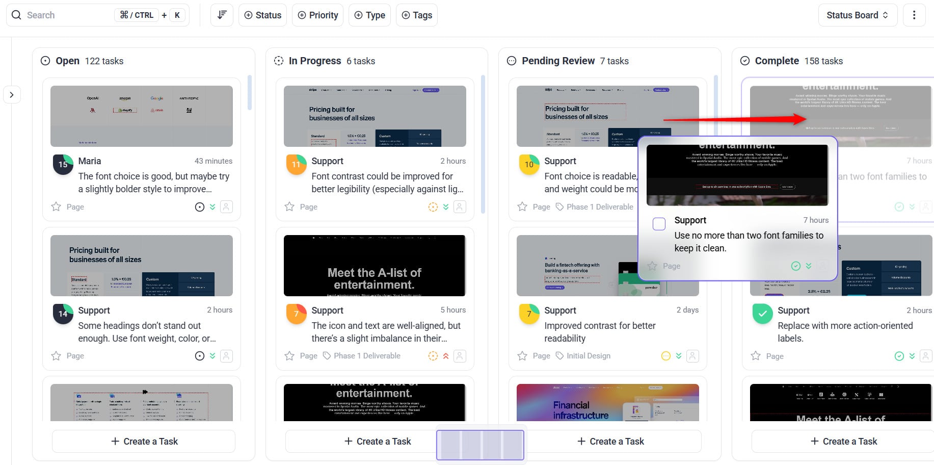 2. Drag and drop the task into the Pending Review column or manually update its status.