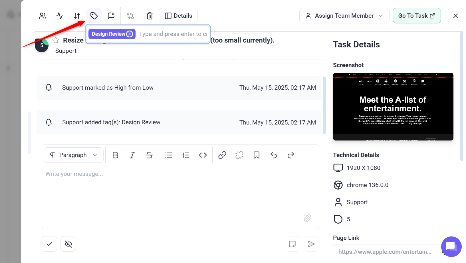 Recommendation: Use tags for recurring feedback themes to quickly identify similar tasks and address them collectively.