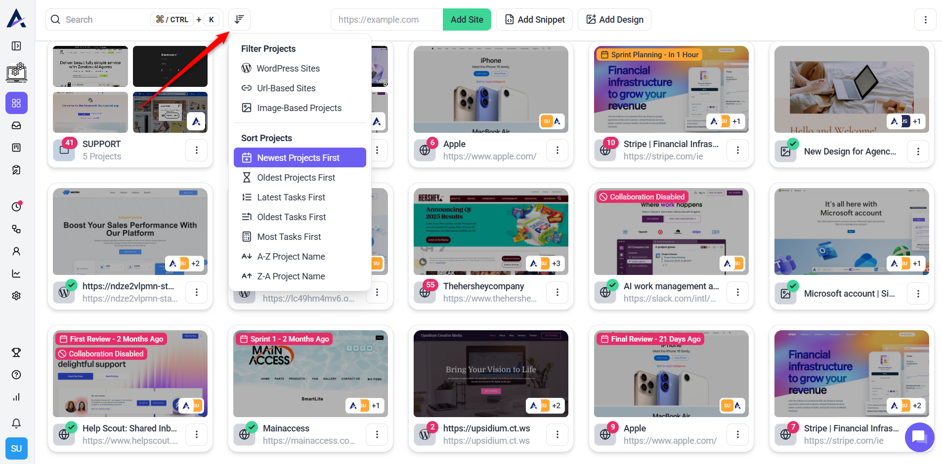- Use filters to sort projects by the most recent tasks, ensuring urgent items are addressed first.
