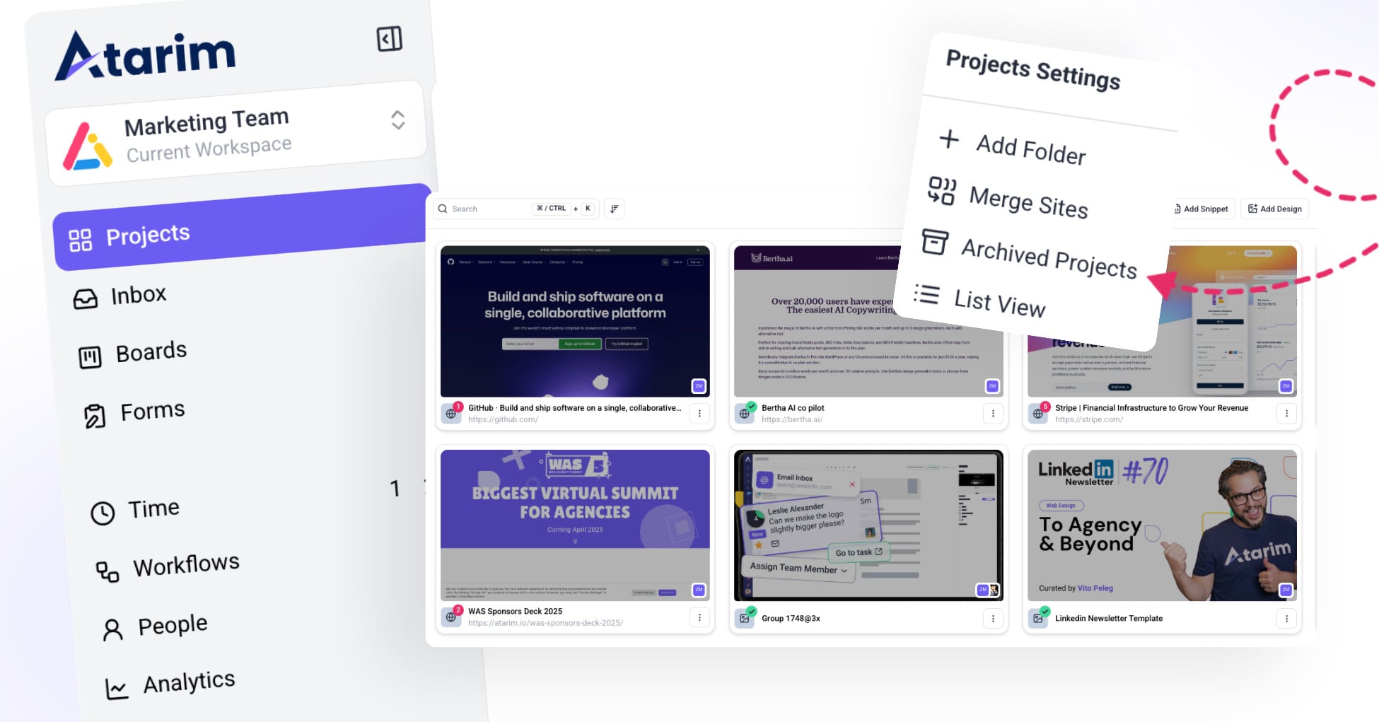 • Ensure you are logged into Atarim and have access to the Projects screen.