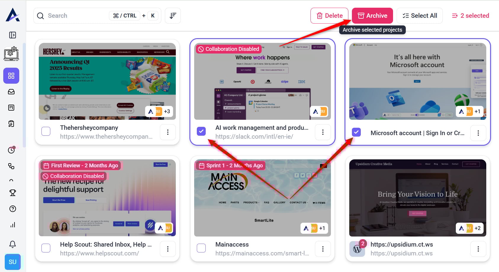 Easily manage your project list by archiving and unarchiving projects without losing any data.
