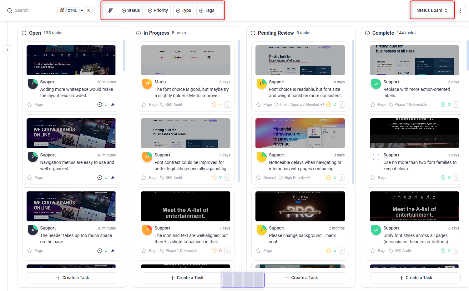 Tip: Use the Priority Board view to focus on high-impact tasks first.