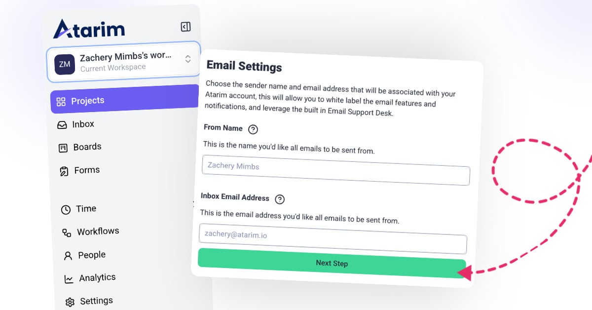 This allows you to manage your email communication entirely from within the platform. This step requires domain authentication, which you can learn more about by reading our article: Verifying domains on Atarim.