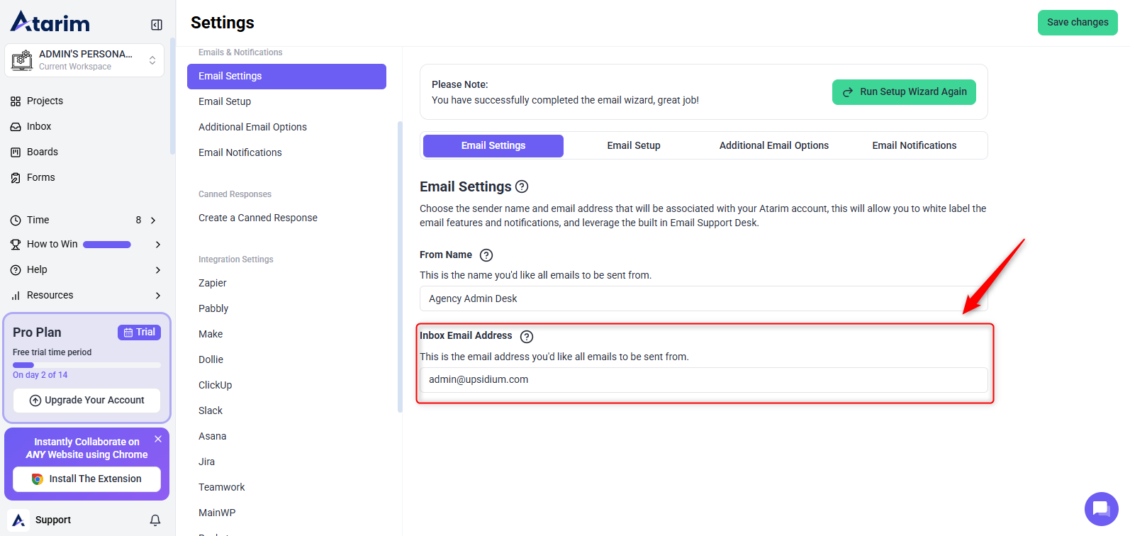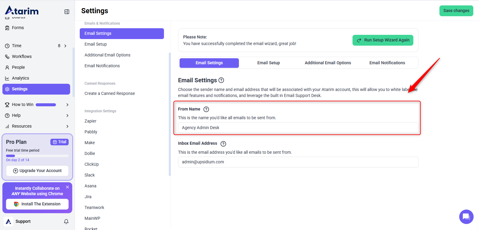 - Navigate to Settings → Email Settings in your Atarim dashboard.