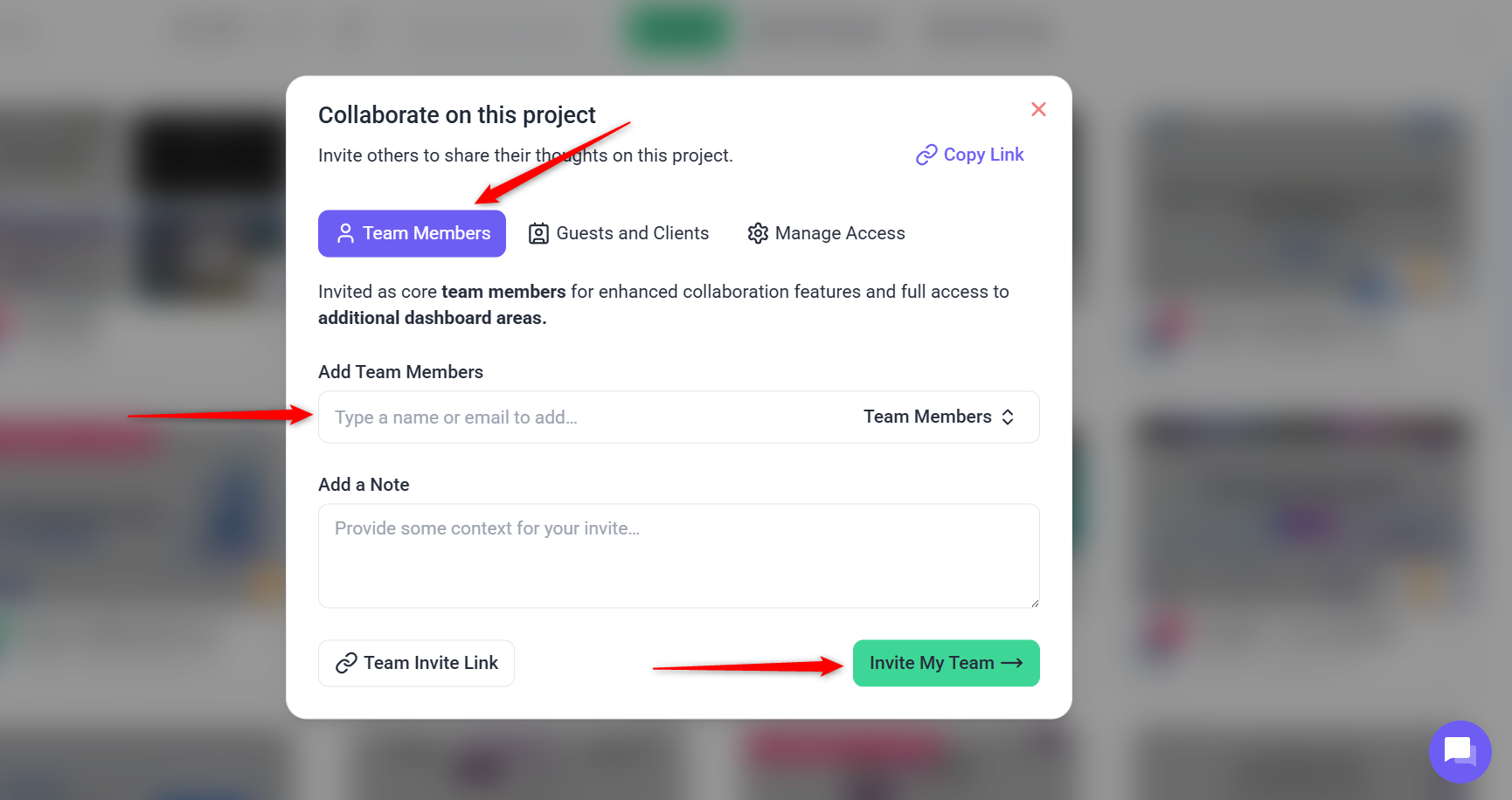 3. Inviting Team Members and Clients