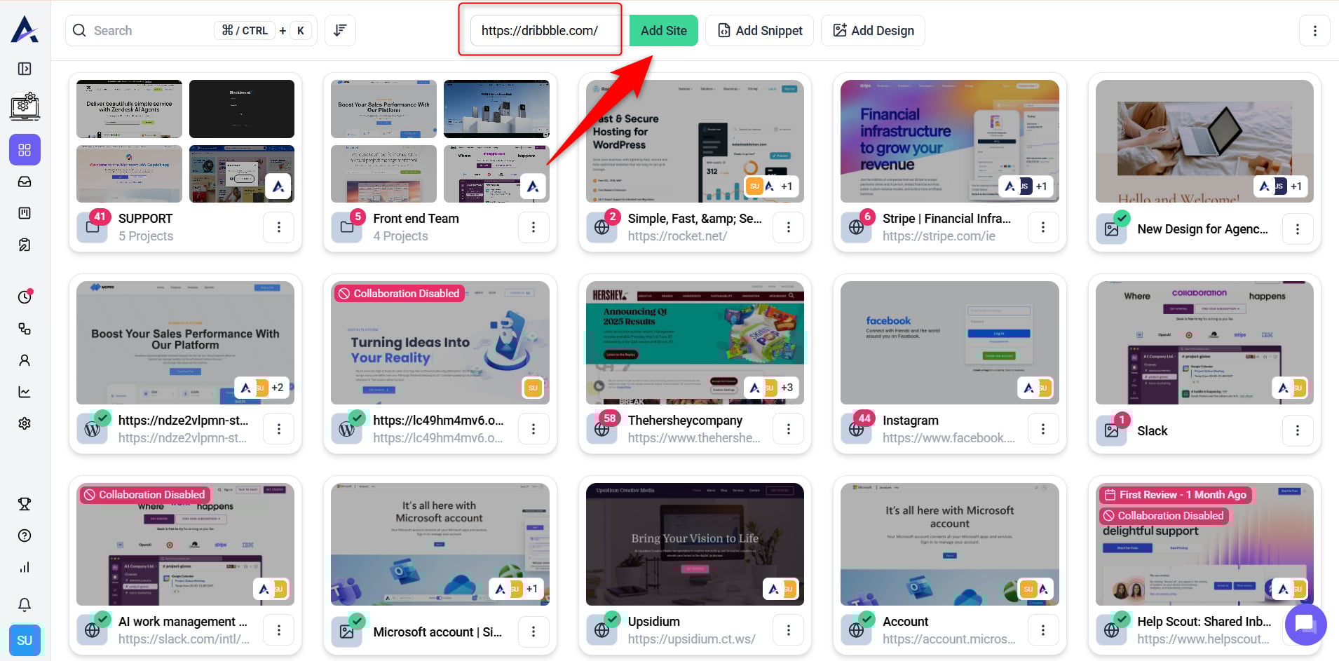 This quick method allows you to add any website URL, enabling collaboration within seconds.
