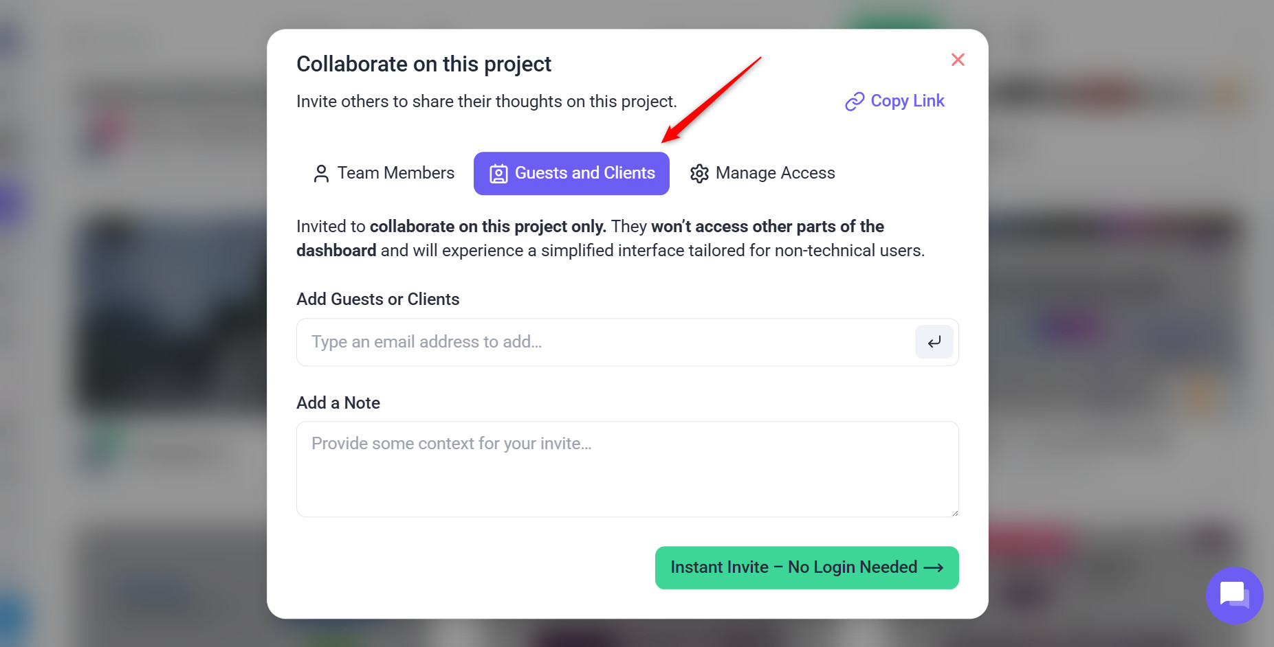 • Invite clients via email from the projects page to bypass their need to register. Straight into feedback.