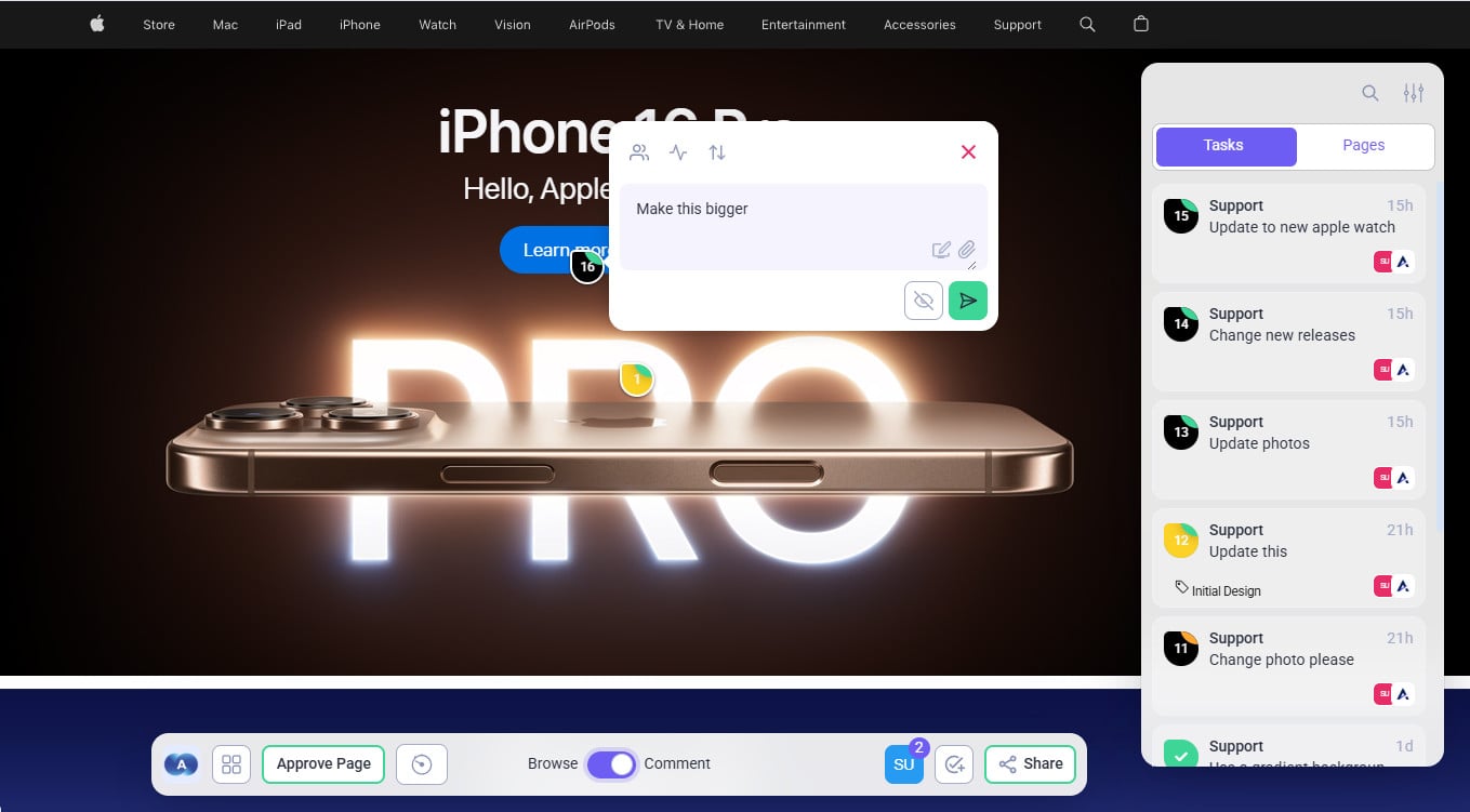 Note: Clients and stakeholders can interact without installing the Chrome extension. Just share the project link or send an invite—they can leave feedback using just their browser.