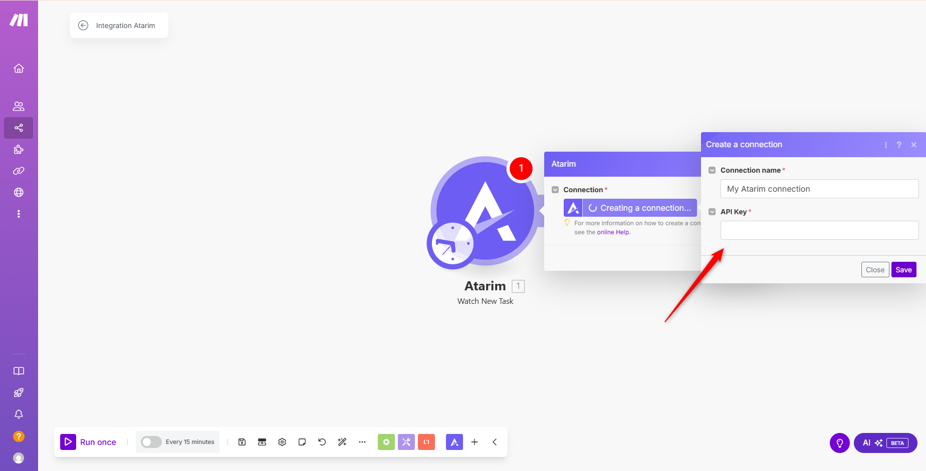 Now that you have your API key, it’s time to connect Atarim to your Make account and set up your first scenario.