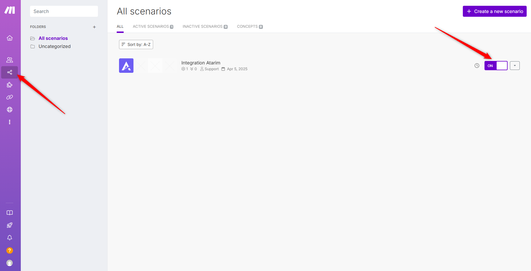 - If successful, click Activate to turn the scenario on.
