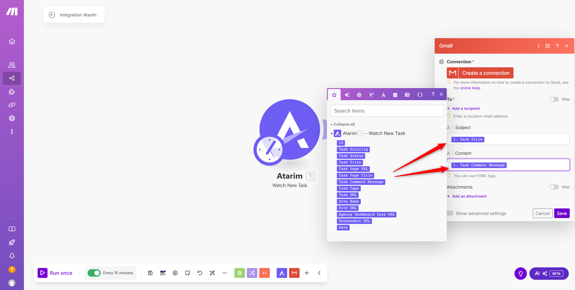 - Trigger a task in Atarim to see the data flow through Make.