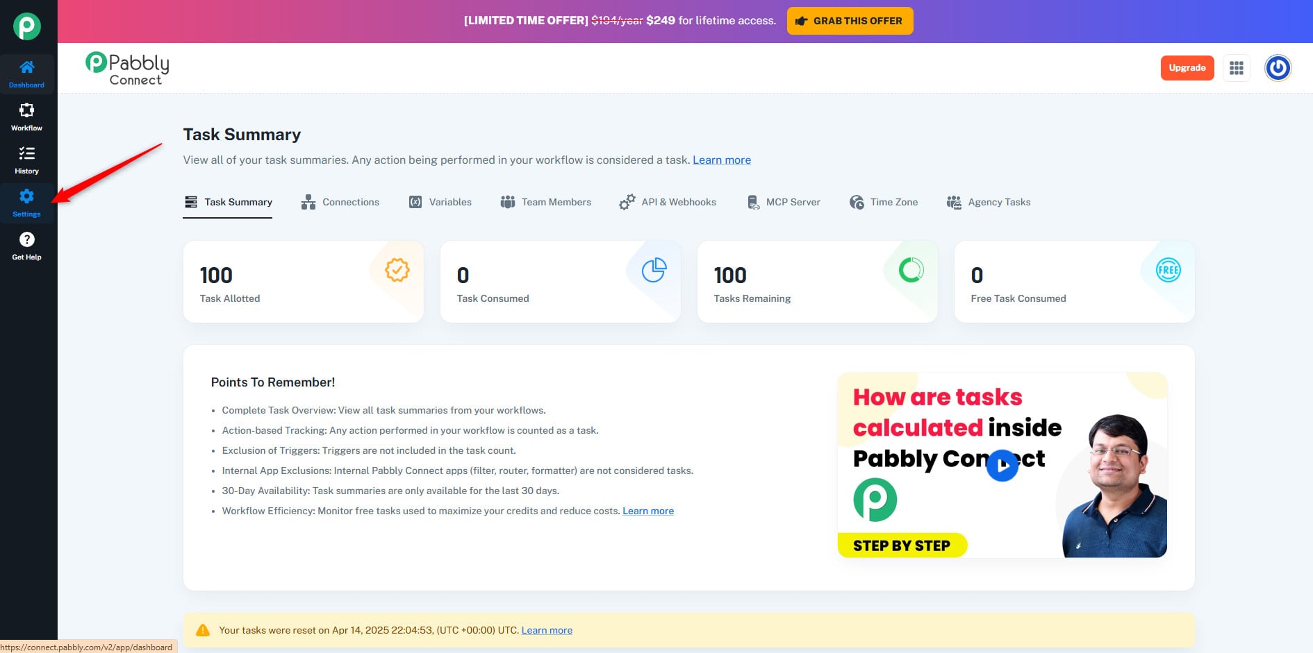 Test the connection in Pabbly by running the workflow manually to check for new Atarim tasks.