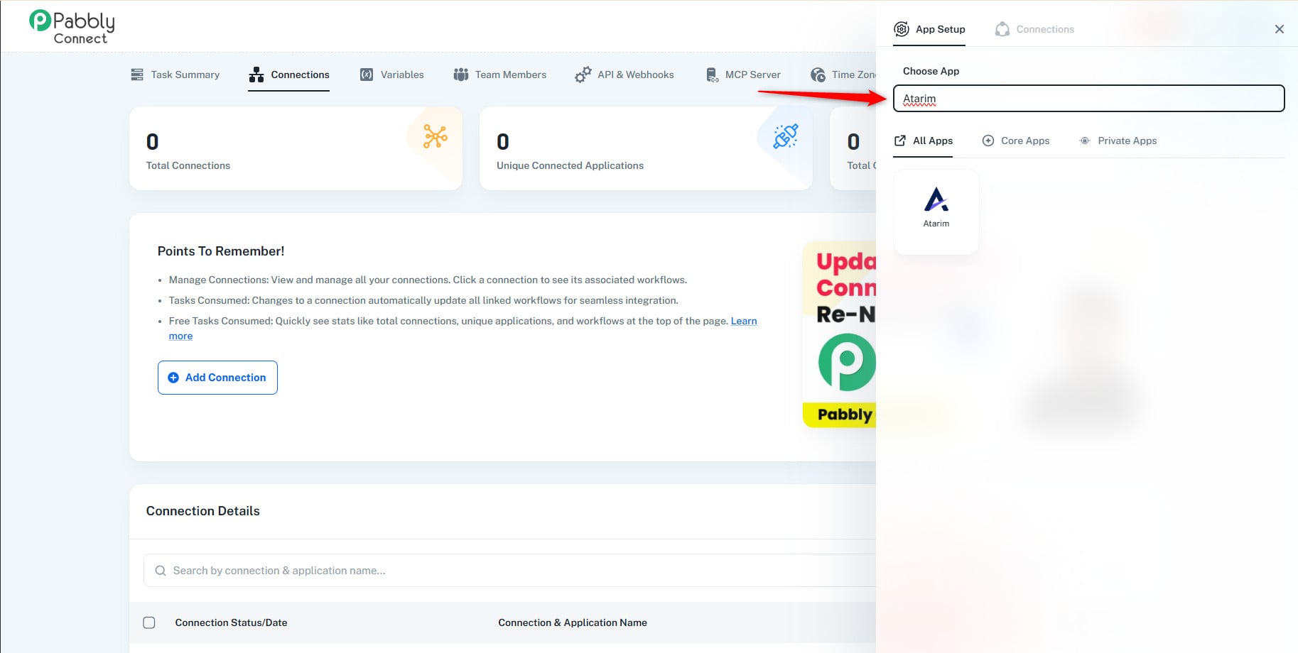 2. Add Atarim as a Connection in Pabbly