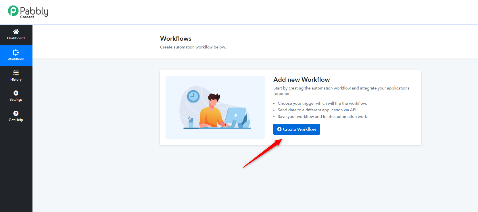 - In Pabbly, create a new workflow.