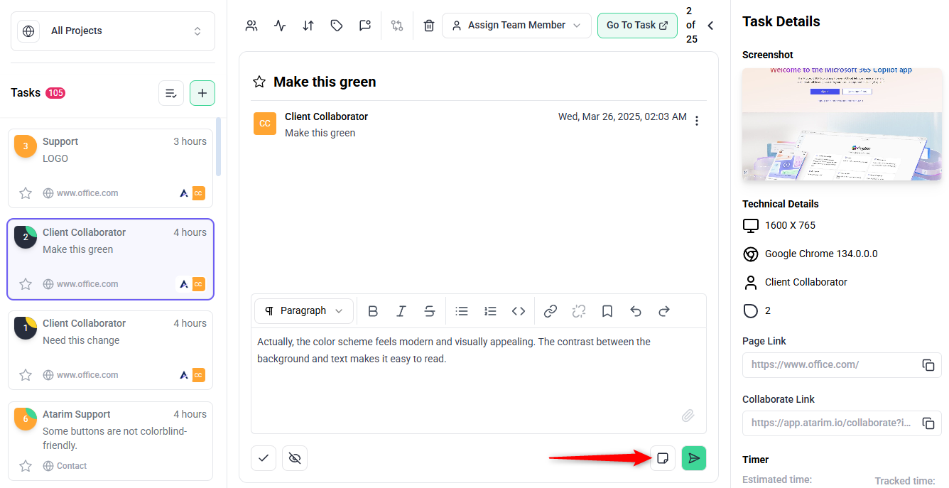 Streamline your workflow with Atarim’s robust task management tools.