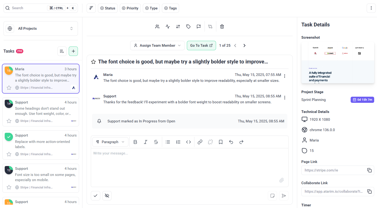 Atarim consolidates communication and task tracking into a single platform.