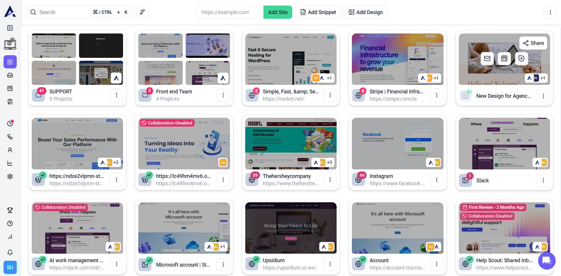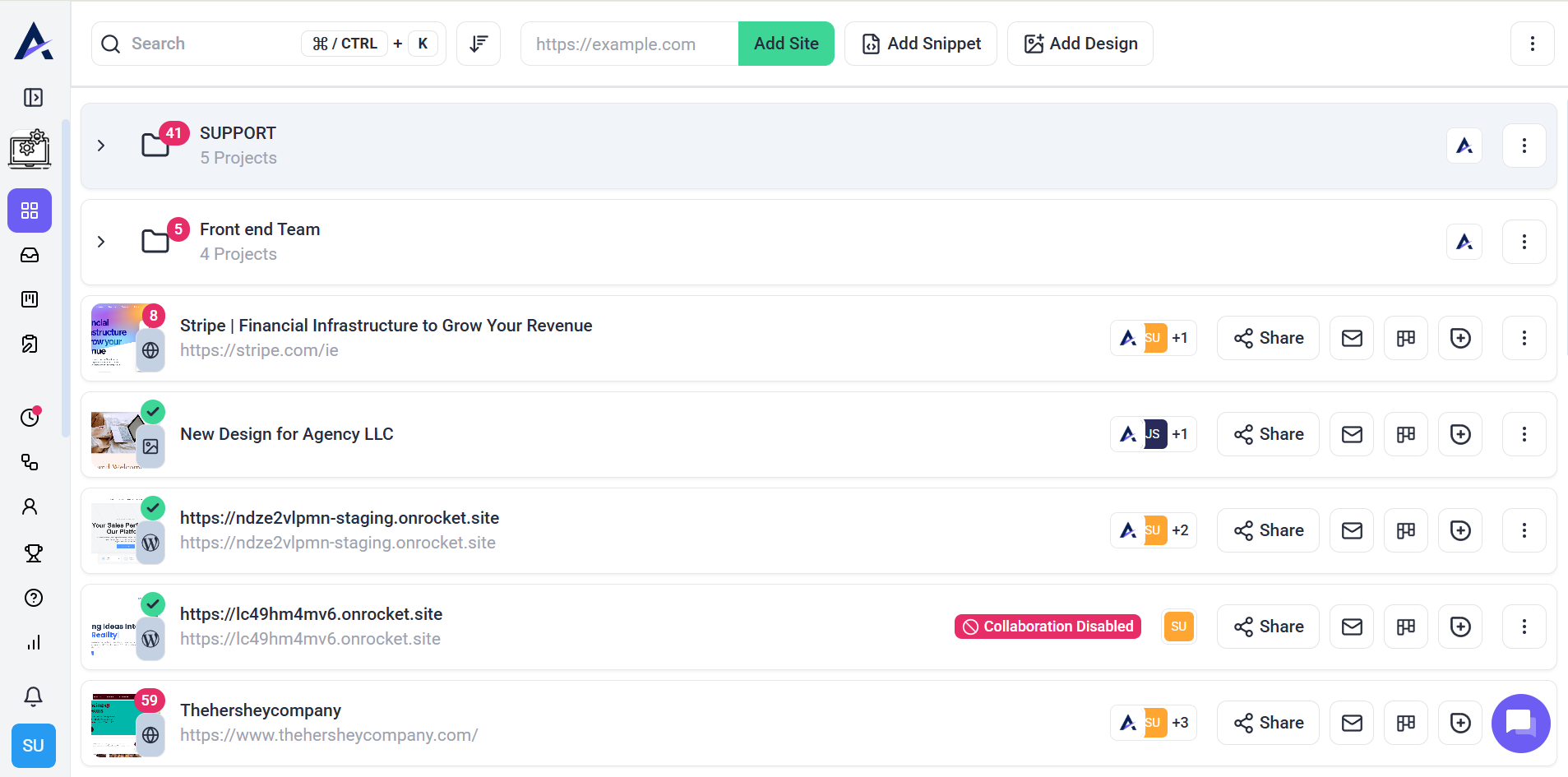 - Project Name and URL – Quick navigation to the site.