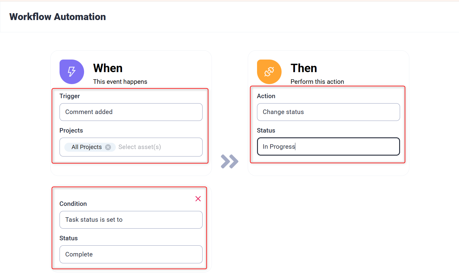 - Define the actions, such as changing the task status to “Urgent” or assigning it to a specific team member.
