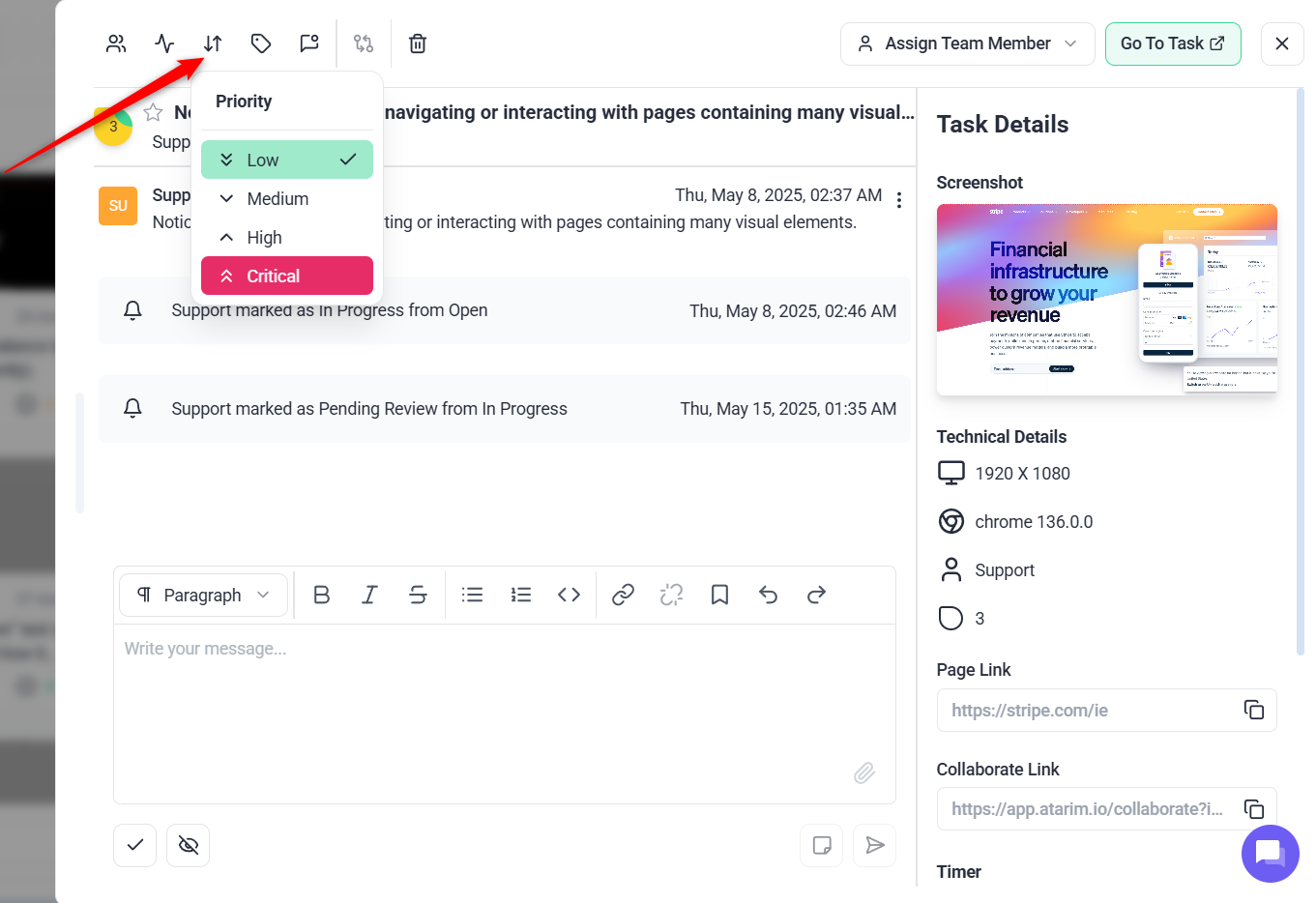 - Update priority level, and add any necessary details in the task description.