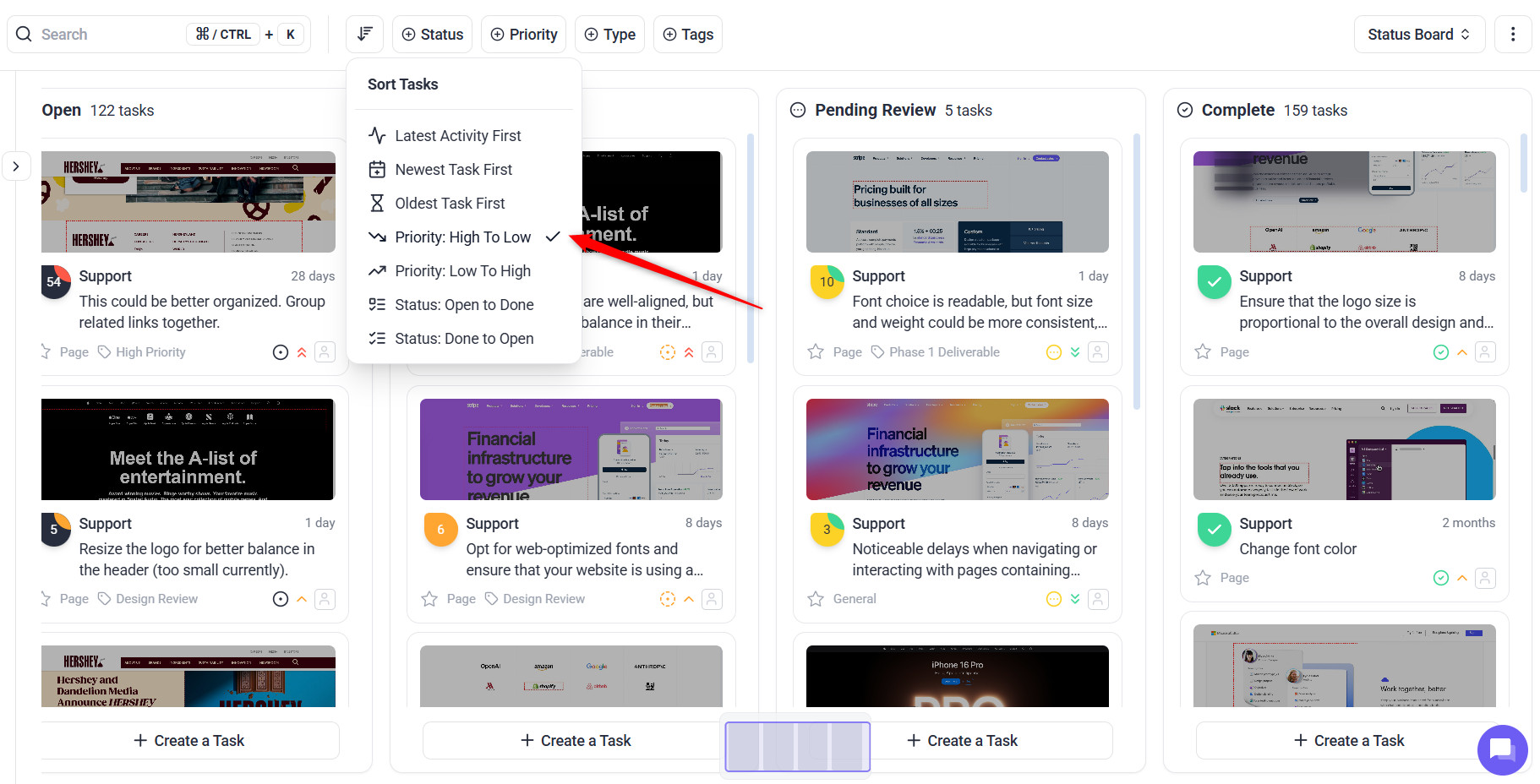 - If you’re working on a tight deadline, filter by “High Priority” tasks to ensure critical tasks are handled first.